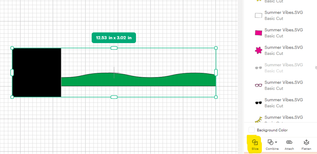 The grass layer is set to 12″, but Cricut’s standard 12″x12″ mat only cuts up to 11½”.